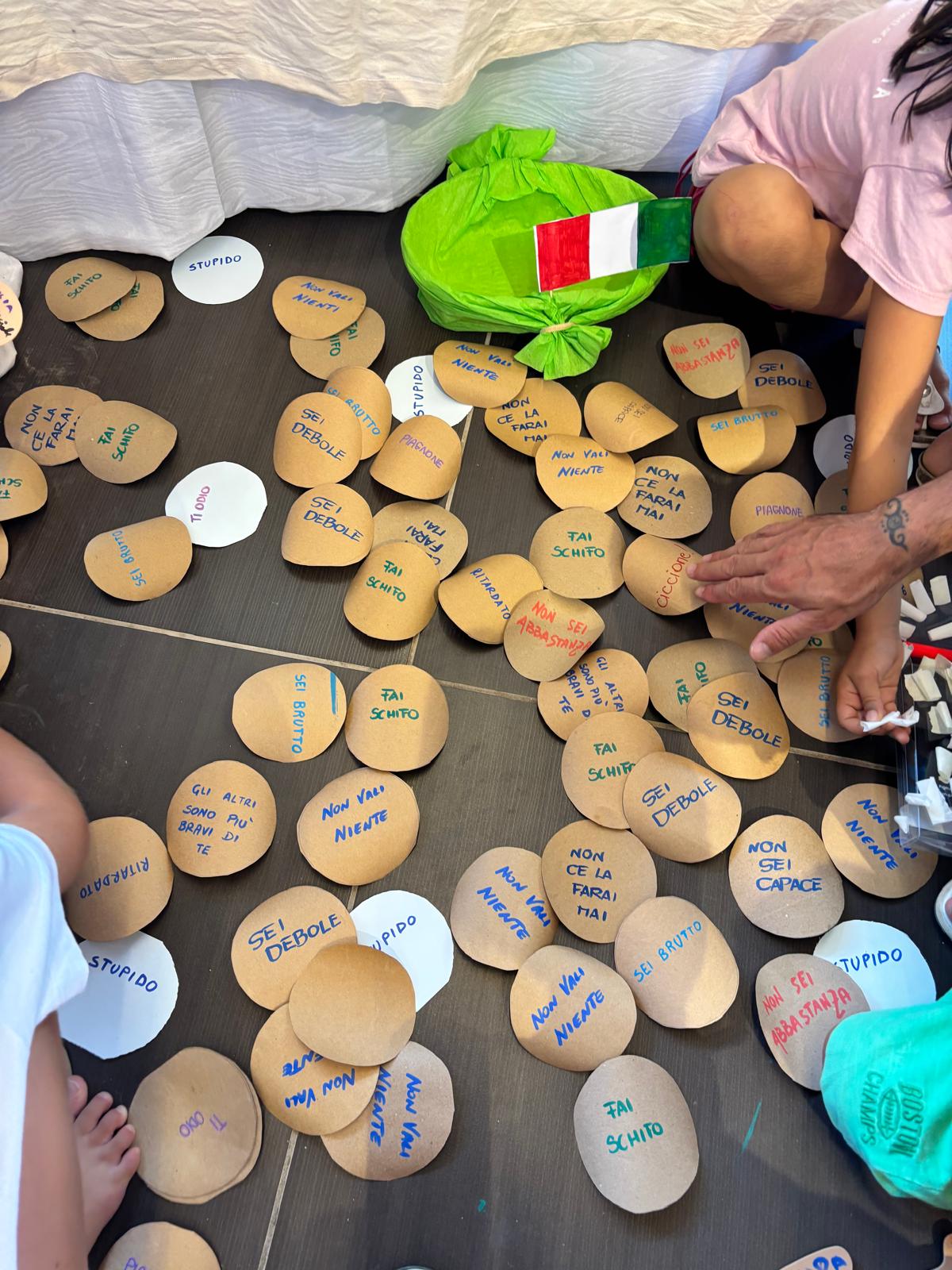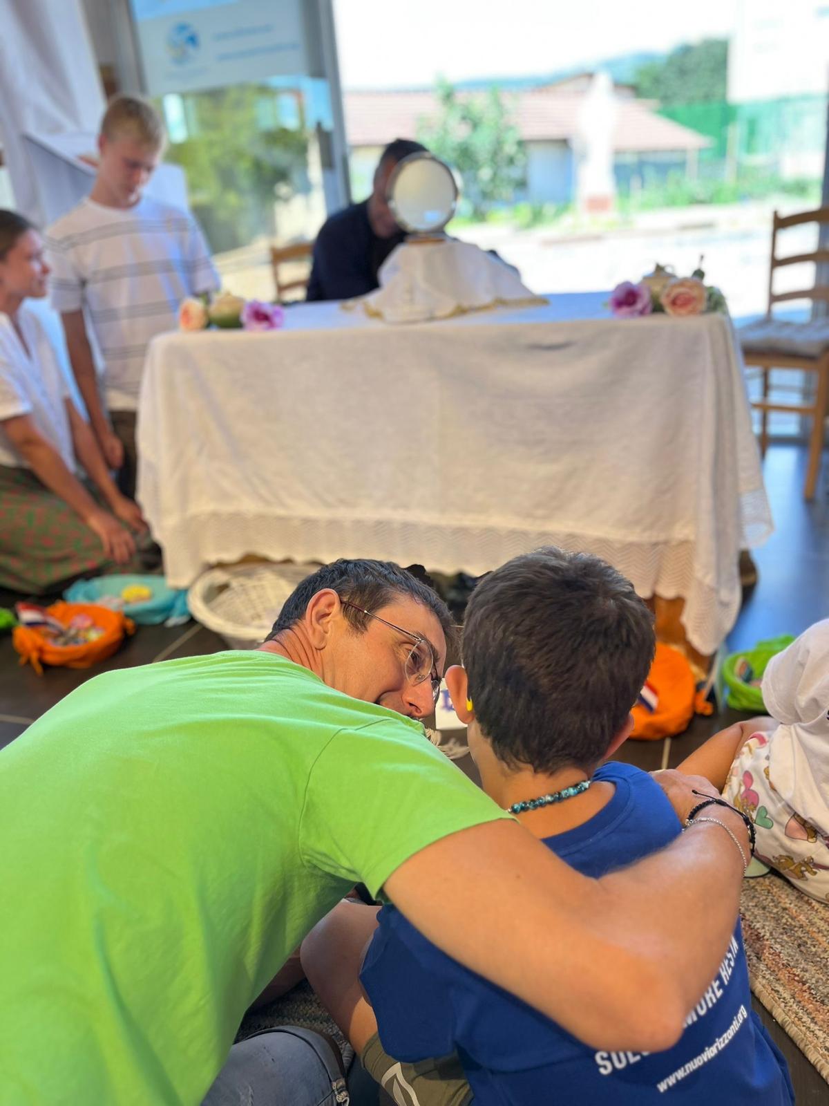 Ci siamo dati anche un tempo per la “la Conoscenza di sé” tramite dei gruppi di condivisione per piccoli, grazie al disegno e a un po’ di traduzione. Al loro interno è emersa tanta fatica nelle relazioni e, per tanti bambini, un profondo senso di inadeguatezza, di esclusione e basso valore di sé. Nelle due settimane insieme ci ha accompagnato un “Librone” bellissimo, dipinto a mano da alcune ragazze speciali, con, all’interno, vari personaggi del circo, tradotti con un linguaggio per bambini, che si rifacevano ai personaggi del “Il prodigio che è in te” di Chiara Amirante.