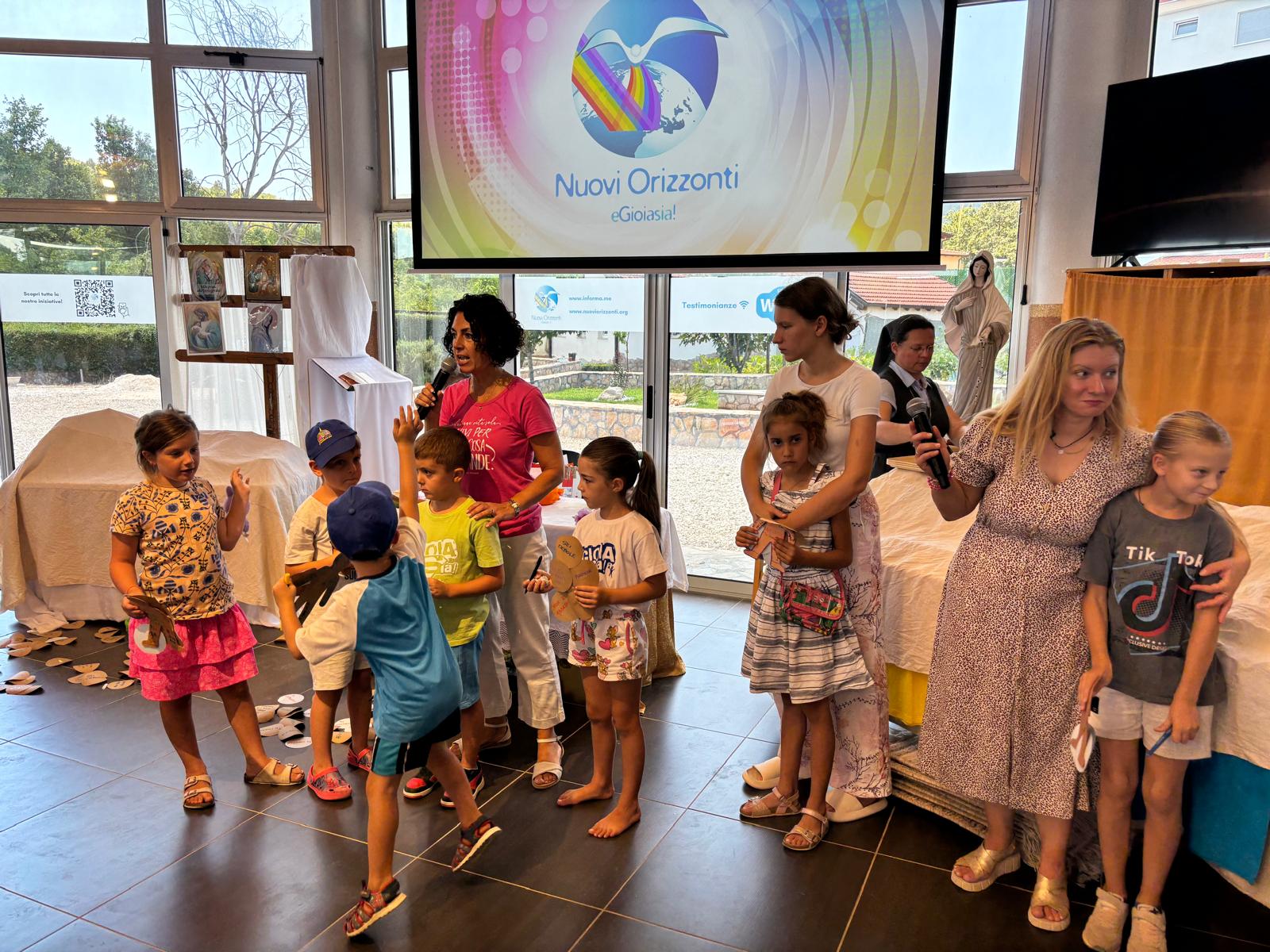Ogni personaggio è stato poi tradotto nelle tre lingue: italiano, croato e ucraino, cosicché tutti i bambini potessero identificarsi in qualche figura e disegnarla. È stato tanto faticoso, ma bellissima la condivisione con bambini con lingue diverse. Come adulti osserviamo quanto la cultura della prestazione e del mostrarsi forti, incida tantissimo sul senso di valore di sé, producendo anche nei bambini e nei ragazzi una grande sfiducia in se stessi, nel futuro e negli altri. Dopo aver visto le nostre maschere, atteggiamenti o ferite, abbiamo consegnato tutto a Gesù, vivendo dei momenti di adorazione fortissimi.